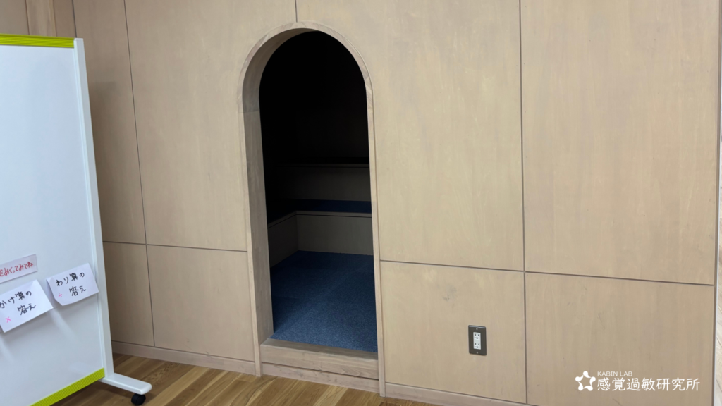 その考え方は、感覚過敏研究所が目指す理想像でもあります。この社会、特に集団の社会生活の中では、音などの騒がしさを中心に刺激が多く、意識せずとも私たちはストレスを感じ疲れやすくなっています。誰だって、静かに過ごしたい時があるはずですが、学校などの集団社会では逃げ場がありません。そんな時に、落ち着ける場所があるのは最高です。