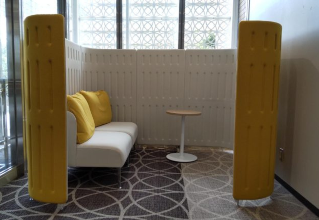 大阪府立中央図書館の1階には、パーティションを利用したカームダウンスペースが設置されています。