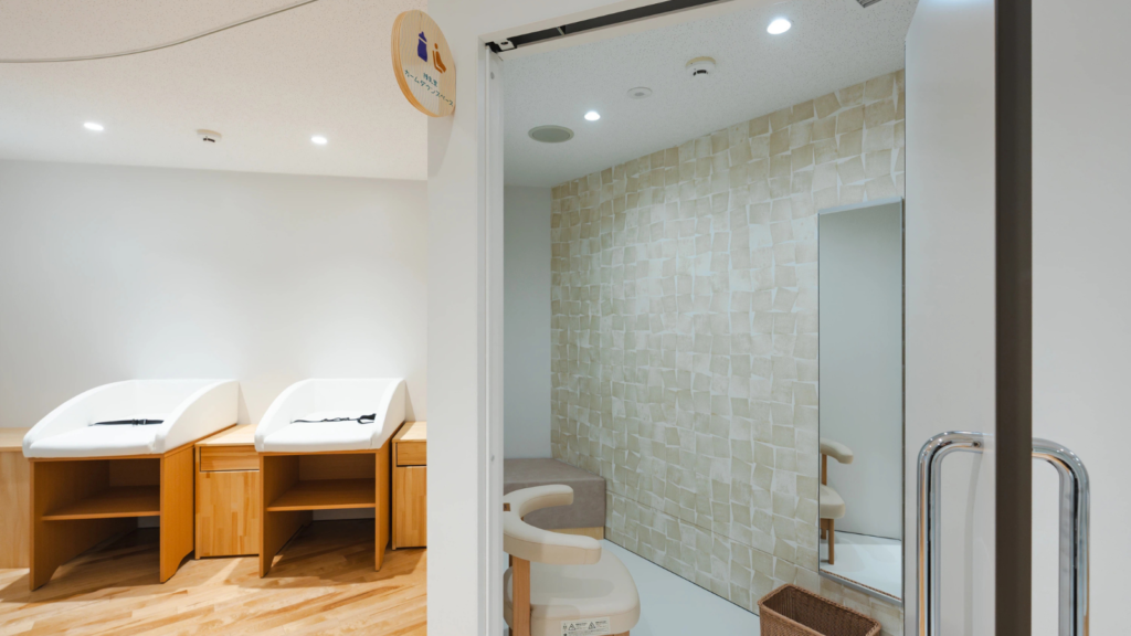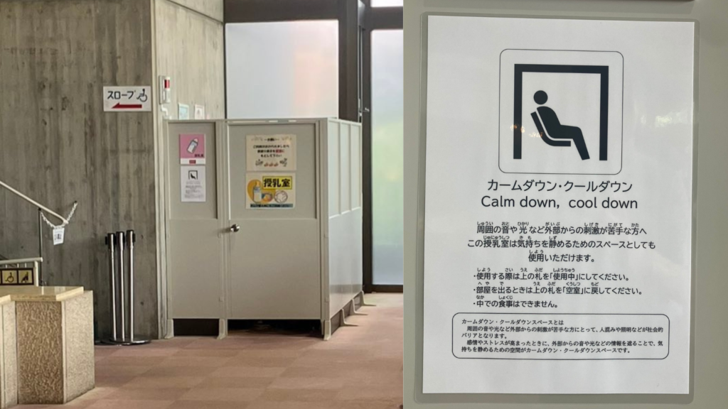 横浜市中央図書館には、未就学児のお子さんとその保護者の方が使える「おやこフロア」があり、そこに授乳室と兼ねたカームダウンスペースが設置されています。