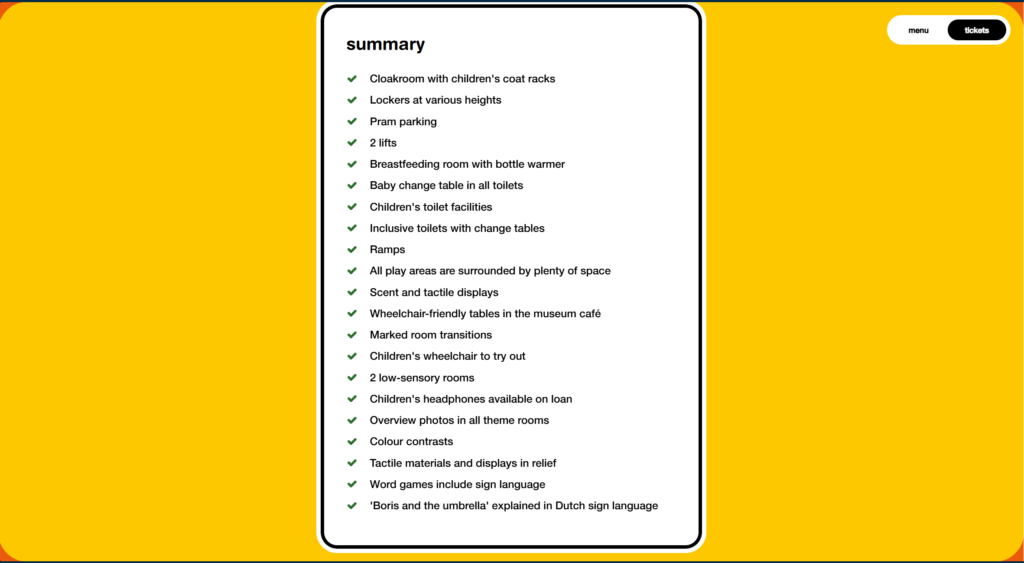 この「low-sensory room(カームダウンスペース)」は、2023年の改修を機に設けられたものだそうです。ナインチェミュージアムでは、「すべての子どもが安心して楽しめるミュージアム」を目指して、展示空間のアクセシビリティを重視した改修が行われました。