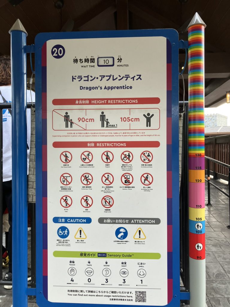 この感覚ガイドがあることで、感覚過敏の人はもちろん、各アトラクションの刺激の強さを一目で確認できます。事前に刺激の強さが分かるため、乗るかどうかを判断しやすく、多くの人に役立つ指標だと感じました。