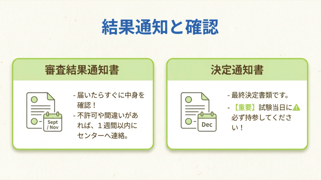 - 審査・通知から試験当日までの流れ