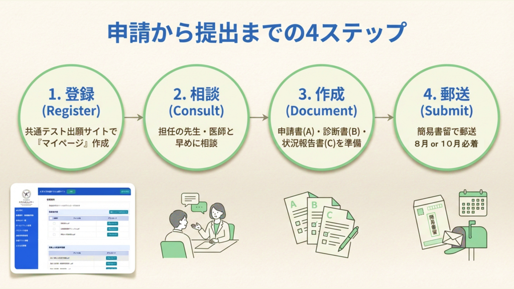 この記事では、共通テストの合理的配慮(受験上の配慮)について、申請の流れと準備を時系列で整理します。