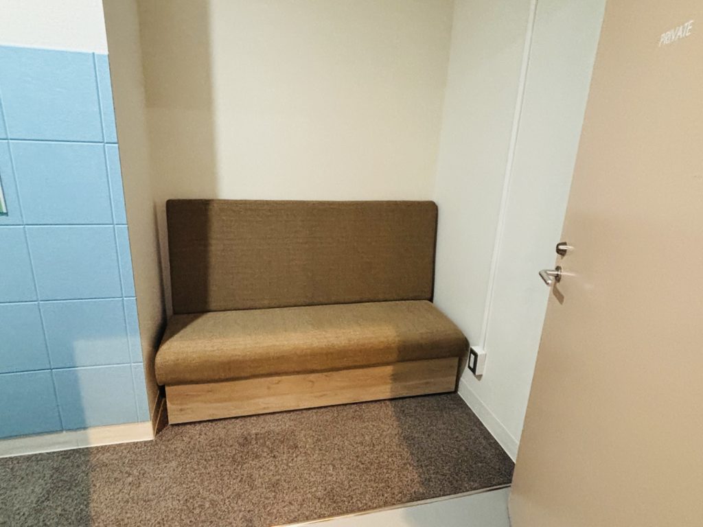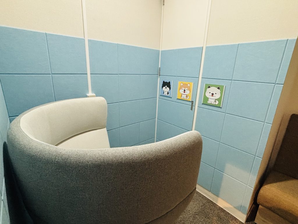 ロールカーテンで仕切れるようになっており、閉めると「利用中」という文字が表示される仕様のため、使用中かどうかが分かりやすいです。またカームダウンスペースの中には、ソファと一人掛けの椅子が設置されています。
